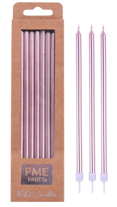 - Pack of 6 Metallic Pink Rose Gold Birthday Cake Candles.